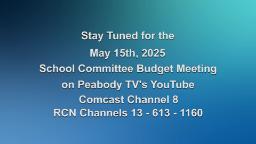 - School Committee FY26 Budget Meeting 05.19.25